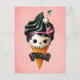 Pas exactement le cône de glace ordinaire. Le scoop est le crâne d'une fille avec de longs beaux cheveux noirs attachés avec l'arc et la cerise attachée. Oh, attendez, ce n'est pas la cerise - c'est sur plus de crâne. Design d'Halloween doux et effrayant.