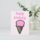 NewParkLane - Carte postale, avec un cône de glace mignon et une citation 'Joyeux Anniversaire' dans une typographie rose chaud amusante, sur un fond rose tendre.