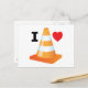 Funny I heart traffic cones carte postale, avec un design amusant orange et blanc de cône de sécurité de la circulation avec un coeur rouge "I Heart". Idéal pour tout étudiant, étudiant adulte ou toute personne qui aime se souvenir de ses jours d'étudiant. Idéal pour les réunions scolaires, les excursions et les fêtes de fin d'études ! Idéal pour rentrer chez vous lorsque vous visitez l'étrange statue du Duc de Wellington à Glasgow, en Ecosse.