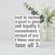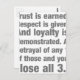 La confiance est gagnée, le respect est donné, Et la loyauté est démontrée. Trahison de n'importe lequel de ceux-là et vous perdez tous les 3.