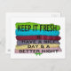Bienvenue dans notre collection de Cartes postales "Keep it Fresh" Art Design, où nous mélangeons créativité et inspiration pour vous apporter des designs uniques et stimulants qui sont parfaits pour envoyer des messages d'encouragement, de motivation et de positivité à vos proches. Nos cartes postales présentent des designs d'art texte qui véhiculent le message "Keep it Fresh" dans une variété de styles et de couleurs attrayants. Que vous cherchiez à égayer la journée de quelqu'un, à offrir des mots d'encouragement ou simplement à vous réjouir, nos cartes postales sont la façon parfaite de le faire avec flair. Avec notre fonction "Concevez votre propre", nous vous offrons la possibilité de customiser des cartes postales qui reflètent votre style et vos préférences personnelles. Que vous souhaitiez ajouter des messages, des images ou des graphiques personnalisés, les possibilités sont infinies. Imaginez la création d'une carte postale avec vos couleurs, polices et motifs préférés - c'est une touche personnalisée qui ajoute une couche supplémentaire de sens et de réflexion à vos salutations. Nos cartes postales sont non seulement visuellement attrayantes, mais aussi de haute qualité et durable. Fabriqués avec des matériaux de qualité supérieure, ils sont conçus pour résister aux rigueurs de l'envoi tout en maintenant leurs couleurs vives et des détails nets. De plus, l'aspect personnalisable vous permet d'adapter les cartes postales à n'importe quelle occasion ou destinataire, en vous assurant que votre message est livré avec style et impact. Nous sommes fiers de nous associer à Achempong Zazzle, une boutique en ligne qui vous propose ce produit extraordinaire. La réputation de Zazzle pour la qualité et la satisfaction de la clientèle vous assure de recevoir des cartes postales qui répondent à vos attentes et les dépassent. Avec leur plateforme conviviale, concevoir vos propres salutations personnalisées n'a jamais été aussi simple. Alors pourquoi se contenter de cartes postales génériques quand vous pouvez créer vos propres chefs-d'oeuvre qui inspirent et soulèvent? Que vous envoyiez un message d'encouragement, fêtiez un jalon ou que vous soyez simplement en contact avec vos proches, nos Cartes postales "Keep it Fresh" Text Art Design Art vous donneront une impression mémorable. Commencez à concevoir la vôtre aujourd'hui et diffusez un peu de positivité où que vous alliez.