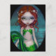Coques dans mes cheveux - une sirène aux cheveux roux étincelants émerge d'une mer orageuse. Elle a de minuscules coquilles dans les cheveux, et une queue brillamment verte! Ma propre peinture acrylique originale.