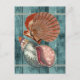 Illustrations vintages de coquillages Brown avec un Arrière - plan en bois bleu foncé. Belle carte avec style Vintage.
