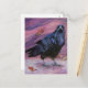 Entre les mondes, la carte postale corbeau présente un majestueux corbeau debout contre un ciel orageux violet au milieu de feuilles sèches soufflant dans le vent. Belle carte pour envoyer à l'amoureux des corbeaux dans votre vie.