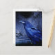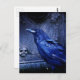Un corbeau près d'une pierre tombale avec une tête de crâne dessus. Couleur bleu-noir.
