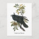 Cette impression est du Corbeau commun, Ceci montre un vieux mâle. Le corbeau est assis sur la branche d'un noisetier.