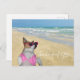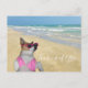 Cette carte postale de plage de corgi mignonne présente un Corgi gallois Pembroke amusant, habillé d'un joli bikini rose et de lunettes de soleil, tout en prenant un bain de soleil sur une belle plage. Chien Hilarious en carte de vêtements pour quelqu'un qui aime corgi humour et photos d'été en vacances. Laissez le texte comme Penser à vous ou personnalisez-le avec votre propre citation.
