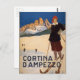 Affiche montrant une femme posée sur les pistes de ski à Cortina d'Ampezzo.