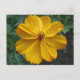 Une délicate fleur de cosmos doré brille de rosée matinale par un chaud matin d'août.