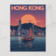 Cette carte d'inspiration rétro capture l'énergie vibrante de Hong Kong au coucher du soleil. Avec un bateau junk classique naviguant à travers le port et la skyline emblématique silhouettée contre un soleil radieux et audacieux, elle évoque un sentiment de nostalgie et d'aventure. Les lettres néon audacieuses "HONG KONG" ajoutent une touche finale et élégante. Parfait pour un message à thème de voyage ou un salut de loin.