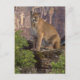 Un beau cougar se dresse sur la falaise avec des pictogrammes anciens derrière. Pastel par l'artiste animalière primée Kathie Miller.