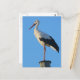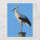 cigogne blanche sur le poteau électrique sur l'arrière - plan du ciel bleu.
