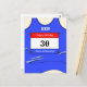 Carte postale personnalisable d'un coureur vêtu d'un gilet bleu, pour des vœux d'anniversaire, bonne chance ou simplement pour enregistrer un temps réalisé lors d'une course ou d'un événement d'athlétisme.