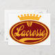 La crosse est King. Cool, signalétique rétro. Oval avec lettrage cursif du mot crosse avec symbole de bâton de crosse à l'intérieur. Orné d'une couronne vintage. Maroon et version or.