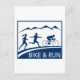 illustration d'une silhouette de course marathon coureur et cycliste avec montagnes et mots vélo et course fait dans le style rétro