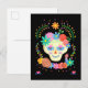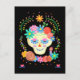 Crâne de sucre charmant encadré de fleurs colorées, pain sucré et bougie allumée. Illustration originale de l'artiste, Noël Snow