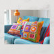 Carte Postale Crocheted Granny Square Pillows Lying on a Sofa