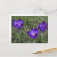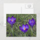 un groupe de beaux crocus violets foncés poussant dans un champ