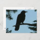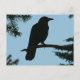 Silhouette d'une Corneille assise dans un pin dans le ciel bleu.