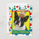 Célébrez un anniversaire avec cette carte de voeux fantastique Boston Terrier Dog. Avec un cupcake équilibré sur sa tête, ce design ne manquera pas d'apporter un sourire et des rires ! BTW, Cette conception a plusieurs versions, avec différentes couleurs arrière - plans. Il y a aussi une invitation à une version Party.