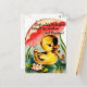 Beau art Vintage d'un adorable petit canard avec un parapluie sur un bassin de nénuphars.Carte postale mignonne.