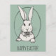 Joli dessin d'un élégant lapin vintage portant une cravate arc-en-ciel. Couleur arrière - plan vert Sage. Texte à personnaliser.