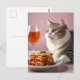 Carte Postale Cute Gray Chat avec Lasagne et Verre à Vin