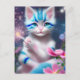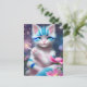 Carte Postale Cute Kawaii bébé rayé rose et bleu chaton chat cha