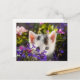Cette jolie carte postale de printemps de chaton présente la photo d'un adorable petit chaton jouant dans un jardin fleuri du printemps. Photographie créée par la photographe primée Maria Jeffs.