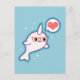 Super mignon narval albino bébé avec lunettes nerd et coeur d'amour.