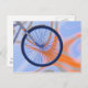 Carte postale colorée avec mon illustration d'une roue de vélo sur un arrière - plan abstrait ondulé bleu et orange.