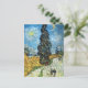 Carte postale d'art avec Cypress Against a Starry Sky (1890), de Vincent Van Gogh (1853-1890). Un peintre postimpressionniste hollandais. Un couple marchant sur un chemin avec un cyprès et champs de blé dans l'arrière - plan contre un ciel bleu.