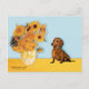 Carte Postale Dachshund (brun1) - Fleurs de soleil