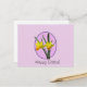 Des jonquilles jaunes émergent devant une "fenêtre" ovale avec des garnitures violettes. Arrière - plan en lavande claire, intérieur d'ovales une ombre plus foncée. Le texte ci-dessous dit "Bonne Pâques !" et peut être customisé.
