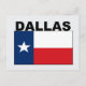 Cette carte postale montre le texte "Dallas" avec un drapeau du Texas dessous.