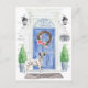 Annoncez votre nouvelle adresse avec notre faire-part élégante avec une porte d'entrée dalmate bleue, tapis de bienvenue, ardoise, topiaires et une couronne fleurie posée sur un arrière - plan en brique grise.