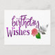 Une simple carte postale d'anniversaire avec juste du texte et une rose avec de la fougère ,