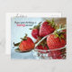 Une carte postale d'anniversaire lumineuse et joyeuse éclatant de fraises estivales pour envoyer vos vœux d'anniversaire à des amis ou à la famille !