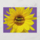 Carte postale violette avec tournesol jaune et texte Joyeux Anniversaire