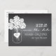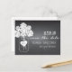 Une jolie jarre Mason pleine d'hydrangeas blancs décore cette jolie carte postale d'annonce de mariage en ardoise.