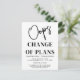 Oups ! Faites savoir à votre famille et à vos amis que vous avez changé la date de votre mariage avec cette carte postale de report de mariage simple et élégante. Des options de modification sont disponibles.