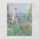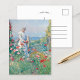 Dans le jardin (Celia Thaxter dans son jardin) (1892) | Œuvre originale du peintre impressionniste américain Childe Hassam (1859-1935). La pièce représente une femme debout dans un beau jardin vert luxuriant avec des fleurs roses et rouges.
