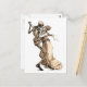 cet art vintage dépeint un squelette avec des chaussures en robe dansant avec une femme blonde aux cheveux tressés longs portant une robe à l'ancienne et une couronne.