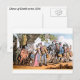 Carte postale de Off to War with Death : Il s'agit d'un art vintage / Illustration de : Le livre anglais Dance of Death publié en 1816, art de Thomas Rowlandson vers 1815. Ici, vous avez un jeune homme prêt à suivre l'appel à la guerre, ses derniers moments avec sa jeune femme et la triste vérité que la mort peut très bien le réclamer avant qu'elle ne le retrouve. La Danse de la mort, ou Danse Macabre art / genre vous voyez La mort approche les gens de toutes les stations et de tous les horizons de la vie, réaffirmant que la mort est le grand niveleur / égalisateur. Ils ont été produits comme un genre artistique d'oeuvres religieuses des années 1400 jusqu'aux années 1800, période pour rappeler aux gens la fragilité de leur vie et combien vain sont les gloires/plaisirs de la vie terrestre.