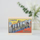 Cette carte postale vintage présente un grand dessin de lettre en jaune et orange, avec des sites locaux et des attractions remplissant les lettres. La carte originale était en lin de 1941, et cette reproduction moderne capture le charme rétro de l'original.