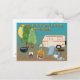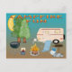 Carte postale Camping Fun avec un fond dégradé marron et bleu, des pins, une lune, une caravane, un barbecue et du charbon de bois, un feu de camp, une chaise de plage, une glacière et un panneau de camping. Le texte jaune et orange indique Campfire Fun. La couleur de fond est personnalisable. Les produits assortis comprennent : invitations, timbres-poste, étiquettes d'adresse, sceaux d'enveloppe, cartes de vœux, cartes postales, autocollants pour cadeaux de fête, décorations de gâteau et pancarte de jardin sont également disponibles dans notre boutique.