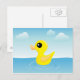 Carte postale avec illustration de canard en caoutchouc jaune.