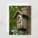 Jolie photo d'un oiseau debout à l'extérieur de sa maison. Nous avons déménagé en texte blanc en bas de la carte postale. Personnalisez tout le texte au recto et au verso selon vos besoins.
