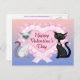 La carte postale de chats de Saint-Valentin comporte un rose et l'arrière - plan violet de gradient, avec un chat blanc et gris portant un coeur rose là-dessus est collier, un chat noir avec un bout blanc là-dessus est queue, portant un coeur rose là-dessus est collier. Les chats se reposent devant un coeur rose avec la dentelle blanche et un arc blanc et rose. Le texte rose foncé foncé stylisé est heureuse Sainte-Valentin ! Perfectionnez pour des envois de Saint-Valentin. Assortit nos étiquettes de adresse et affranchissement.