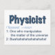 Les physiciens sont intelligents. Ils peuvent aussi être un peu, eh bien, dangereux. Célébrez la folie avec cette carte postale qui définit la profession en termes de ce qu'ils peuvent faire (manipuler la matière) et de ce qu'il faut surveiller (rire mal).